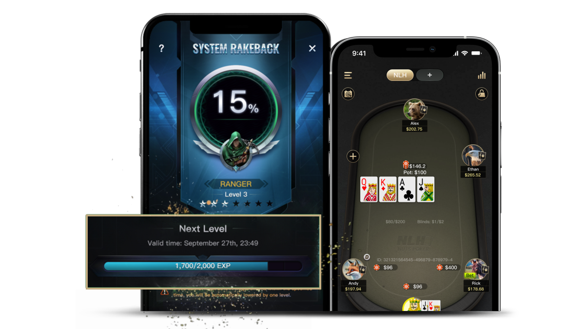 EXP grows based on fees generated in all poker game types. Every $1 paid generates 10 EXP.